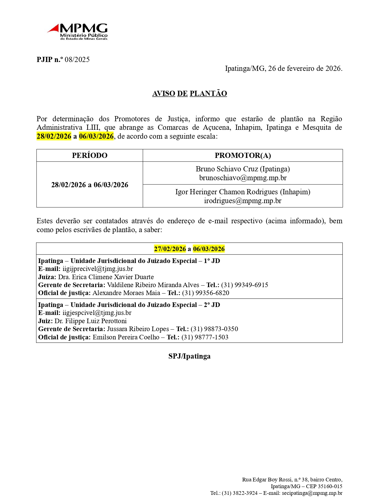 Plantão Judiciário PLANTÃO JUDICIÁRIOATUALIZAÇÃO TODA SEXTA-FEIRA! PLANTÃO FORENSE DO TJMG 27/02/2026 a 06/03/2026 PLANTÃO MINISTÉRIO PÚBLICO 28/02/2026 a 06/03/2026 JUSTIÇA FEDERAL portal.trf6.jus.br/plantao-judicial